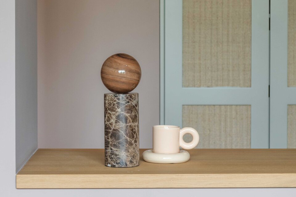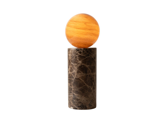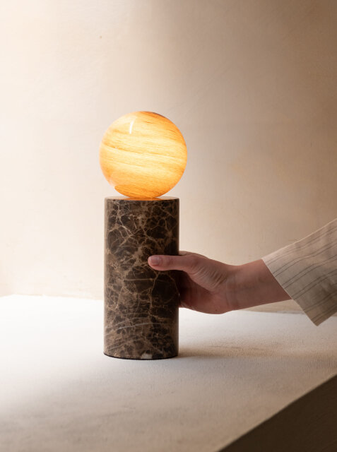 U stolnoj verziji svjetiljka Tivoli izgleda poput minijaturne skulpture. Njezina baza od mramora nosi kuglu toplog sjaja, podsjećajući na sunce koje se spušta na horizont. U toj jednostavnoj formi skriva se profinjena ravnoteža snage i lakoće, idealna za stvaranje intimne atmosfere.