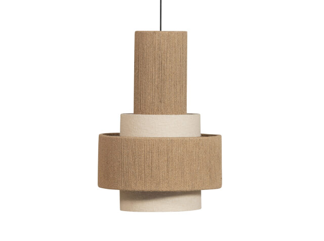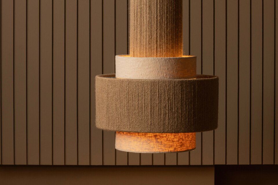 Prirodna ljepota viseće svjetiljke Pelle proizlazi iz pažljivo složenih dijelova koji daju dimenziju i karakter ovoj prekrasnoj svjetiljci. Različiti slojevi boje drva stvaraju igru svjetla i sjene, osiguravajući razigrano širenje svjetlosti i stvarajući ugodnu atmosferu u prostoru. Svjetiljka je izrađena od visokokvalitetnog prirodnog užeta s nijansama koje variraju od svjetlije do tamnije, stvarajući jedinstvenu i profinjenu estetiku!