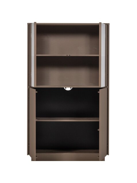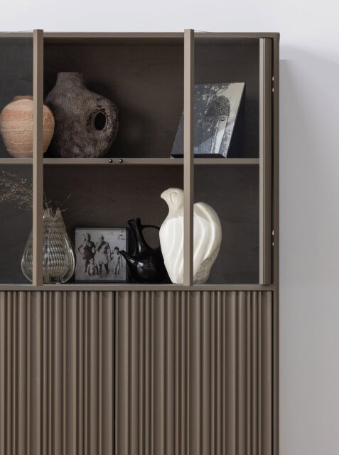 Vitrina Nova ističe se suptilno profiliranim frontama i toplinom prirodnog drva bora, a njezine čiste linije i pažljivo izvedeni detalji čine je jednako dekorativnom koliko i funkcionalnom. Zahvaljujući različitim dimenzijama i vrstama elemenata, komadi iz linije Nova mogu se međusobno kombinirati i nadopunjavati, što vam omogućuje stvaranje zidnog sustava prilagođenog vašem prostoru i stilu.