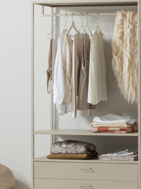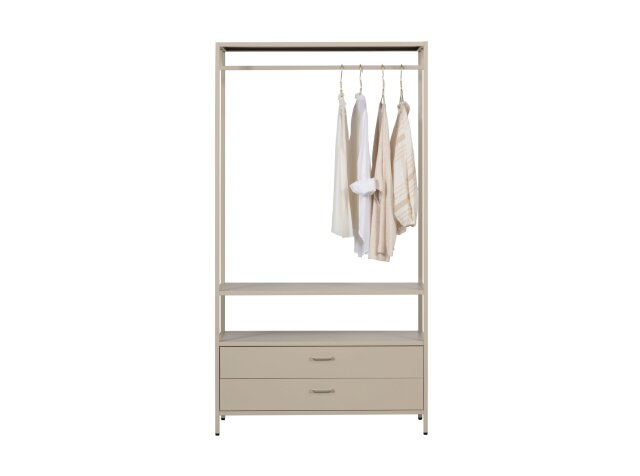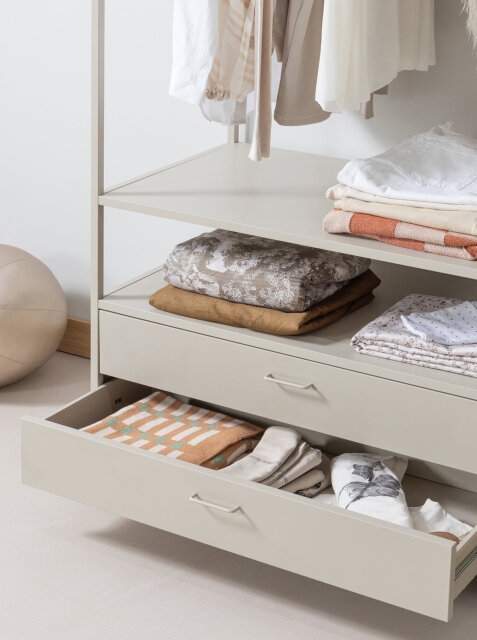 Organizirajte odjeću s lakoćom uz Ferris! Njegov otvoreni okvir i prostrane ladice omogućuju da sve vaše kombinacije budu pregledne i na dohvat ruke. Elegantni dizajn stvara sofisticiran dojam u spavaćoj sobi ili walk-in garderobi, a istovremeno nudi dovoljno prostora za pohranu svega što volite.